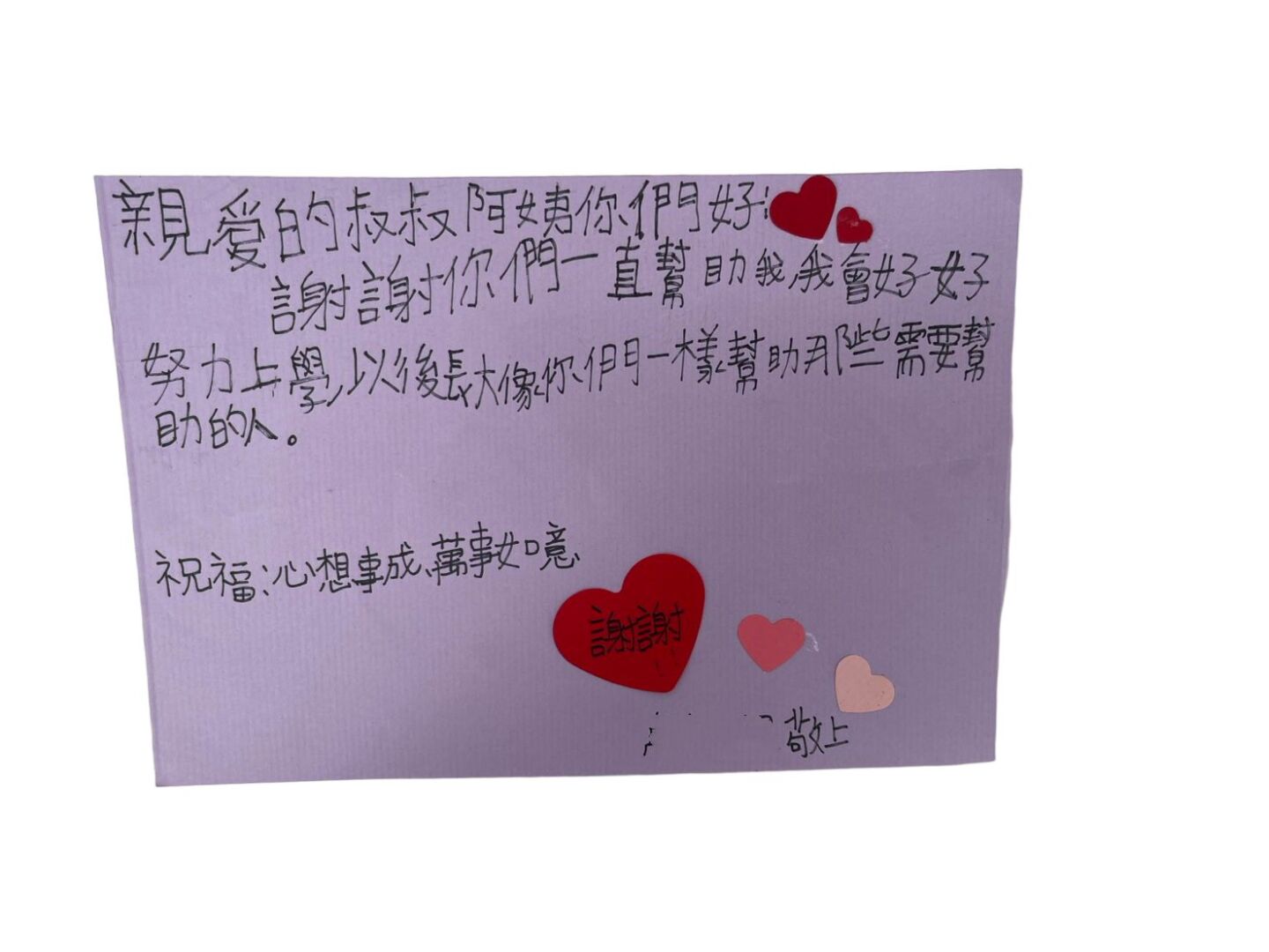 從孩子們親手寫下的感謝卡中